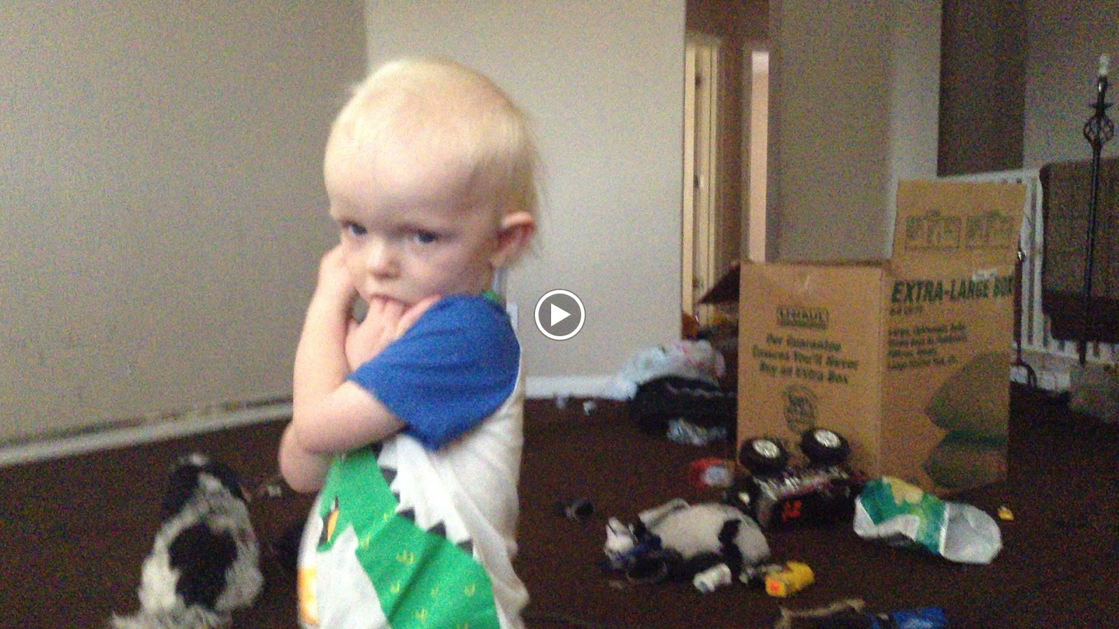 Jeff came to take down their bunk bed. Little Cam really wanted to help by putting the long boards into Jeff's truck.