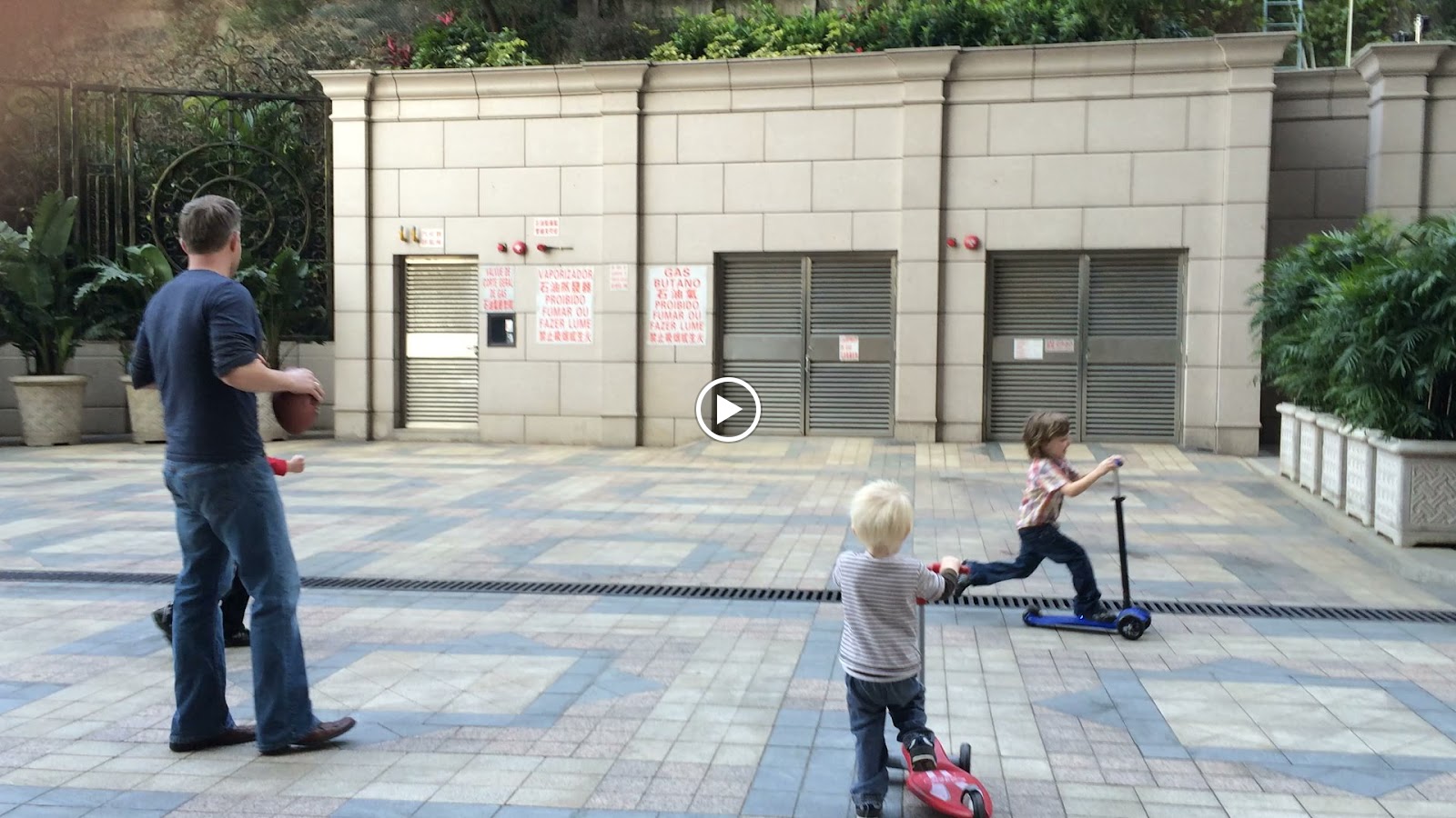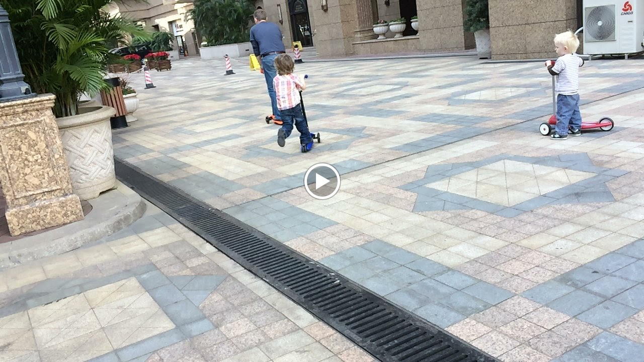 Eric riding Kyle's scooter.