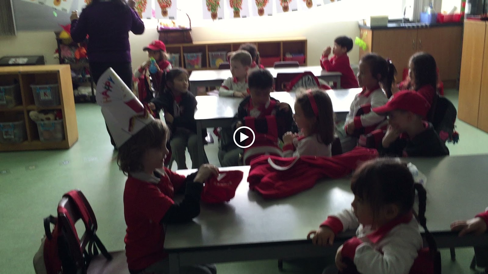 After we went to Kyle's class we walked up to One Grantai to catch the shuttle. Cam and I showed Roy and Starr the grocery stores we shopped at and the park the boys play at while we wait for the shuttle to pick us up. Then it was nap time so Cam and I went to our apartment and Roy and Starr walked back to SCC. A few hours later we met them at TIS so we could help Connor celebrate his birthday with his classmates. Due to Chinese New Year, Connor doesn't have to go to school on his birthday. I figured the day right before holiday would be a good day to celebrate. He handed out really fun Teenage Mutant Ninja Turtle cookies. His teacher has this fun "Birthday" hat he was able to wear while they sang "Happy Birthday" to him. It was a good celebration.