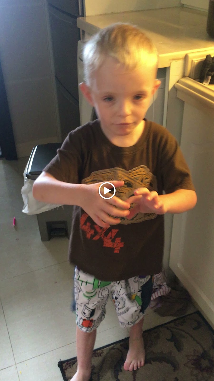 Miscelleneous pictures of Cam. The first one is Cam showing his card he received from Grandma Fern for his birthday. Then there are pictures one of the boys took of him in "action".